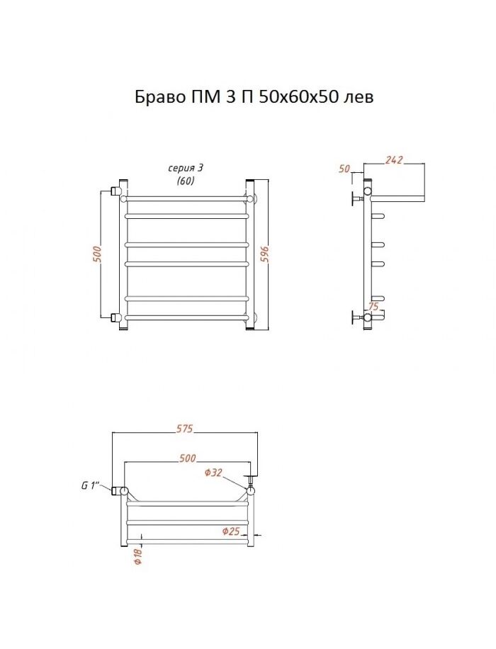 Полотенцесушитель Браво ПМ 3 П 50*60*50 (ЛЦ4) лев