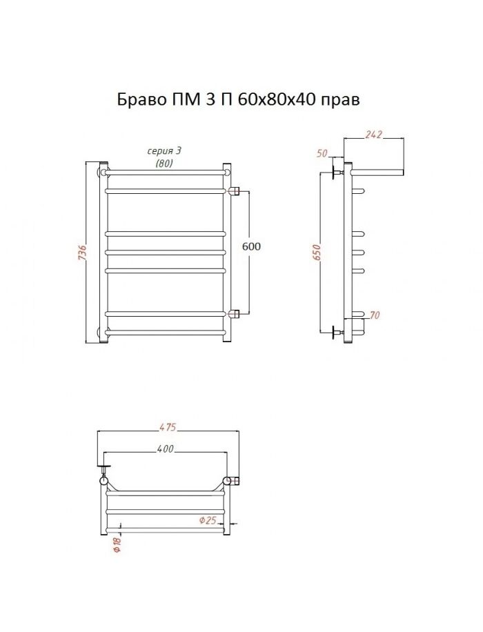 Полотенцесушитель Браво ПМ 3 П 60*80*40 (ЛЦ4) прав