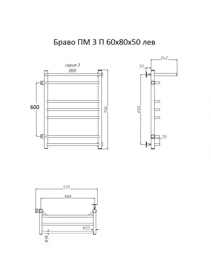 Полотенцесушитель Браво ПМ 3 П 60*80*50 (ЛЦ4) прав