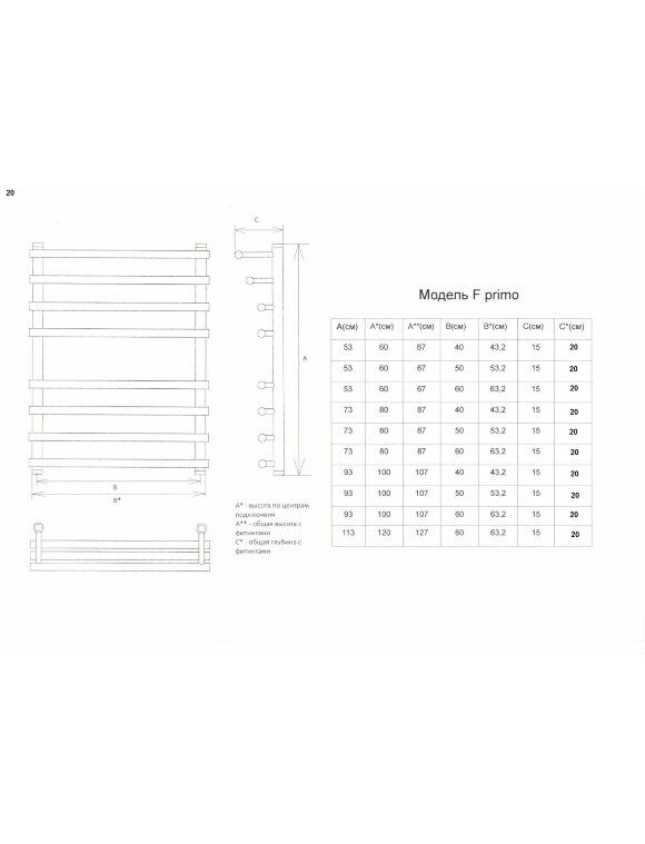 Полотенцесушитель ДВИН F Primo 60/40 Водяной 1"-3/4"-1/2" К1 Полированный