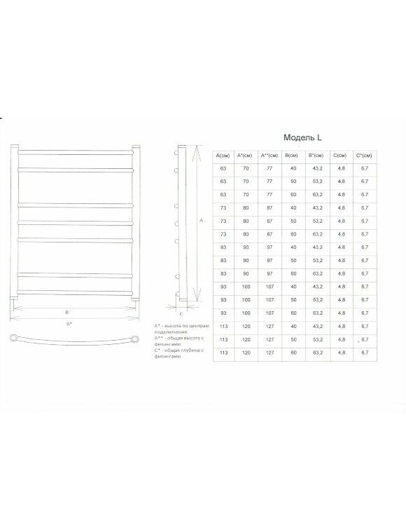 Полотенцесушитель ДВИН L 80/50 Водяной 1"-1/2" К1 Полированный