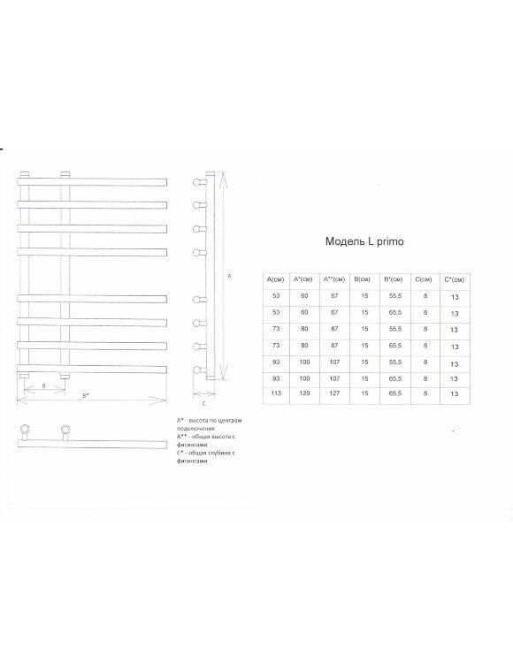Полотенцесушитель ДВИН L Primo 60/15 Водяной полн.ширина 55 см 1"-3/4"-1/2" К1 Полированный