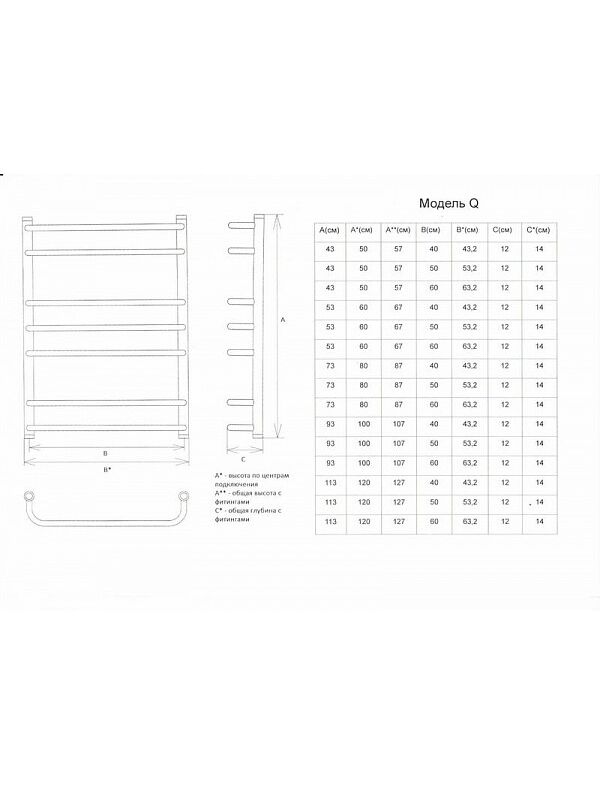 Полотенцесушитель ДВИН Q 80/50 Водяной 1"-1/2" К1 Полированный