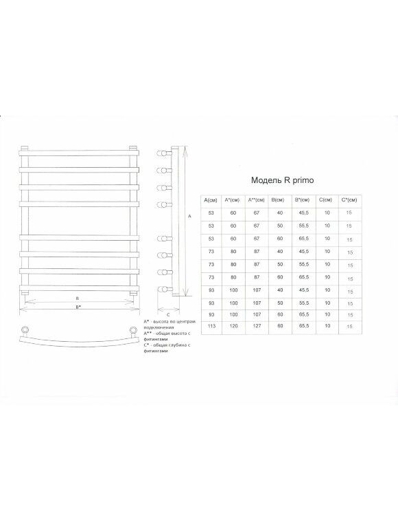 Полотенцесушитель ДВИН R Primo 80/50 Водяной 1"-3/4"-1/2" К1 Полированный