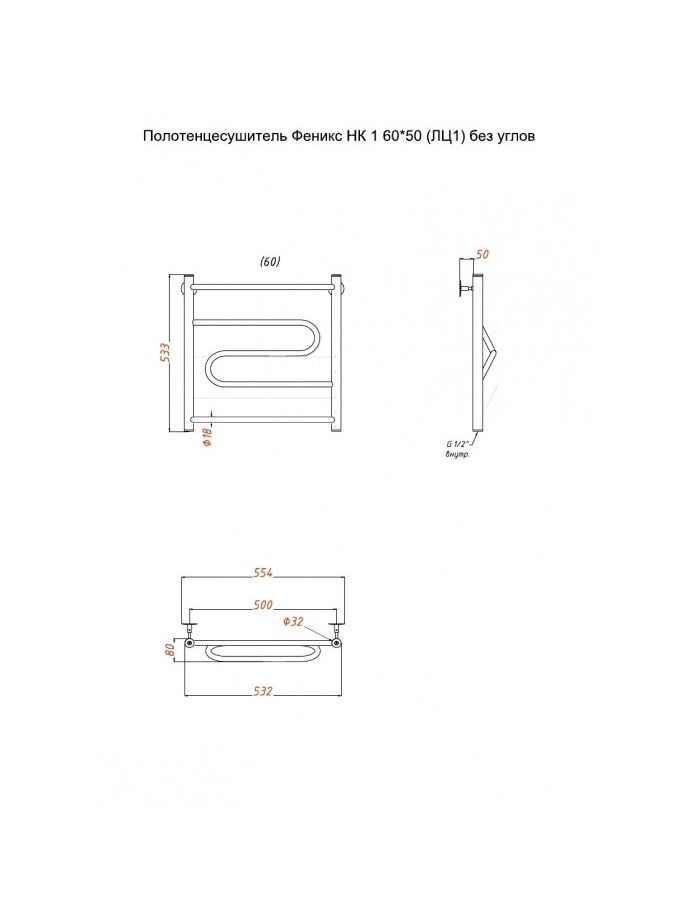 Полотенцесушитель Феникс НК 1 60*50 (ЛЦ1) без углов