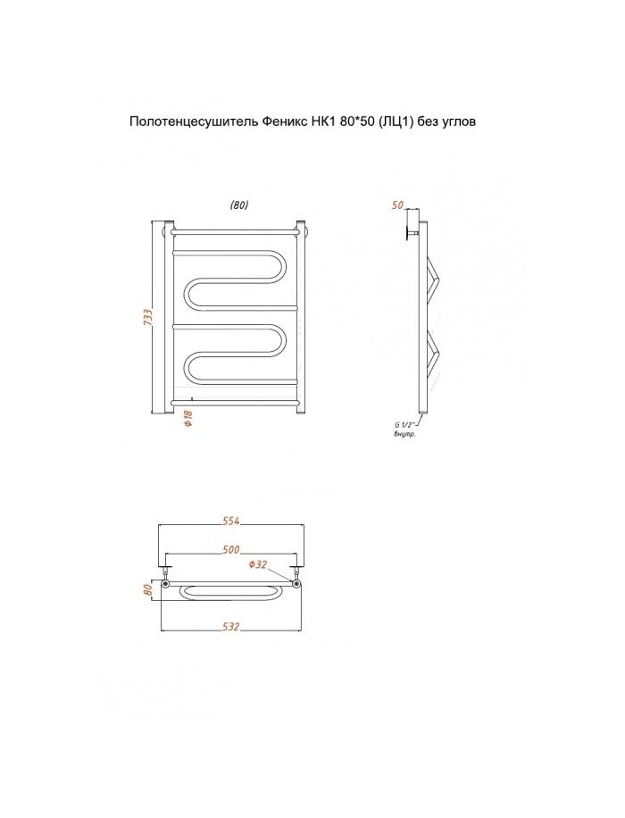 Полотенцесушитель Феникс НК1 80*50 (ЛЦ1) без углов