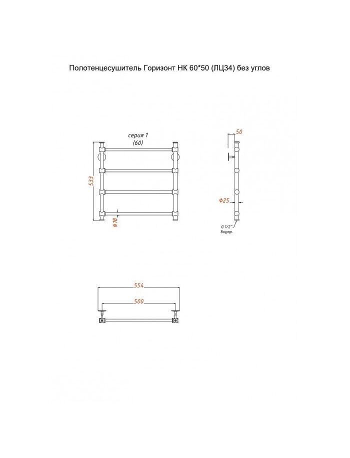 Полотенцесушитель Горизонт НК 60*50 (ЛЦ34) без углов