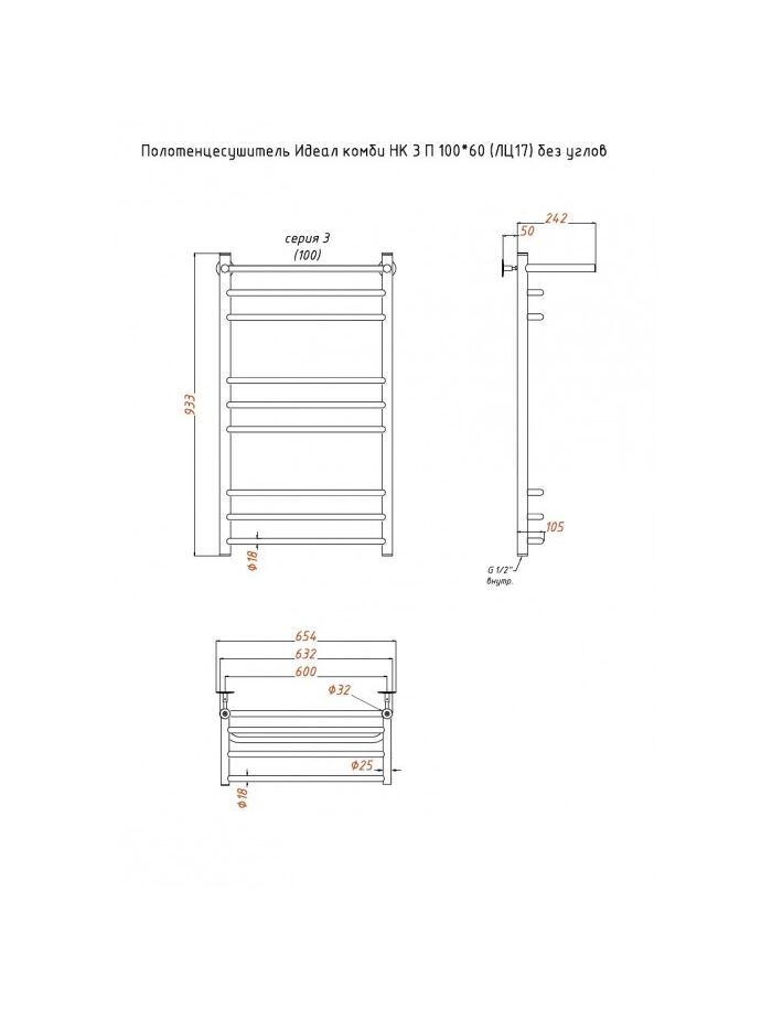 Полотенцесушитель Идеал комби НК 3 П 100*60 (ЛЦ17) без углов