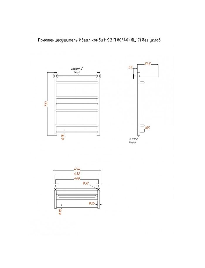 Полотенцесушитель Идеал комби НК 3 П 80*40 (ЛЦ17) без углов