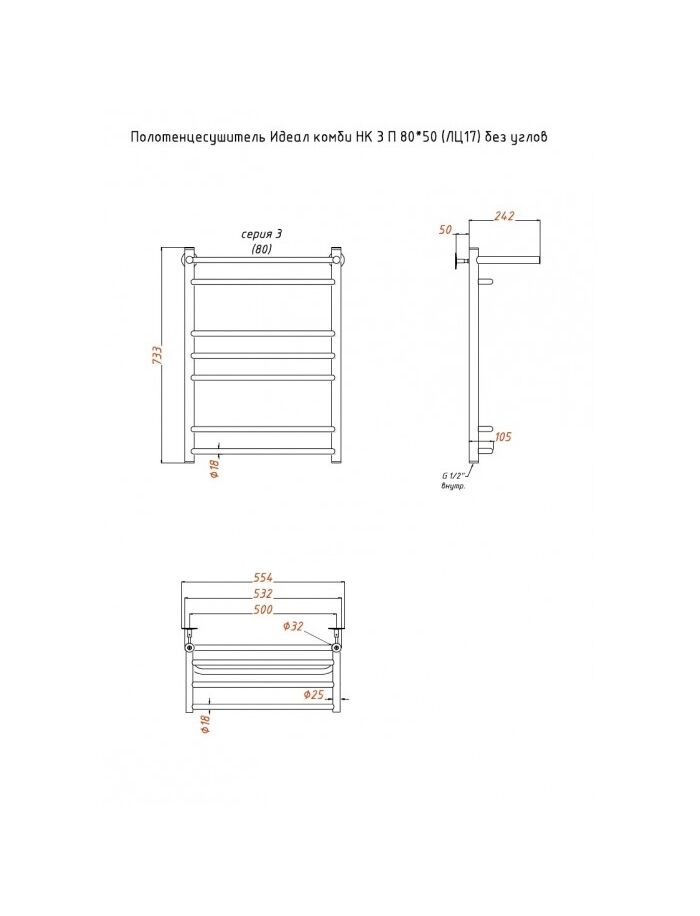 Полотенцесушитель Идеал комби НК 3 П 80*50 (ЛЦ17) без углов