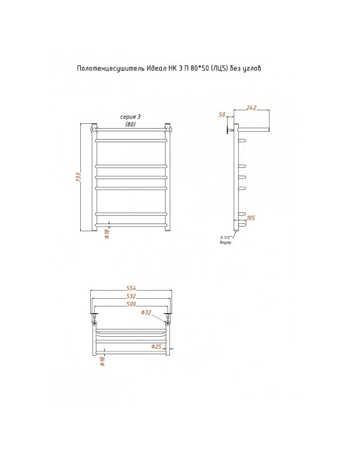 Полотенцесушитель Идеал НК 3 П 80*50 (ЛЦ5) без углов
