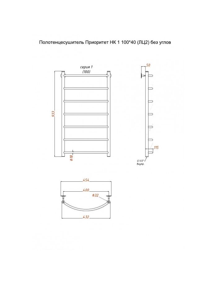 Полотенцесушитель Приоритет НК 1 П 100*40 (ЛЦ2) без углов