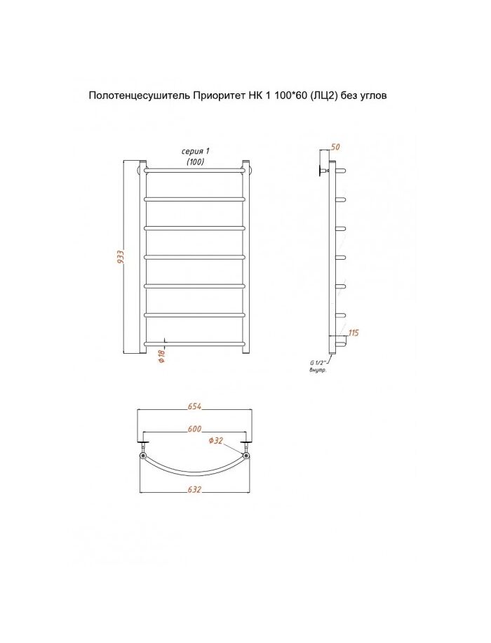 Полотенцесушитель Приоритет НК 1 П 100*60 (ЛЦ2) без углов