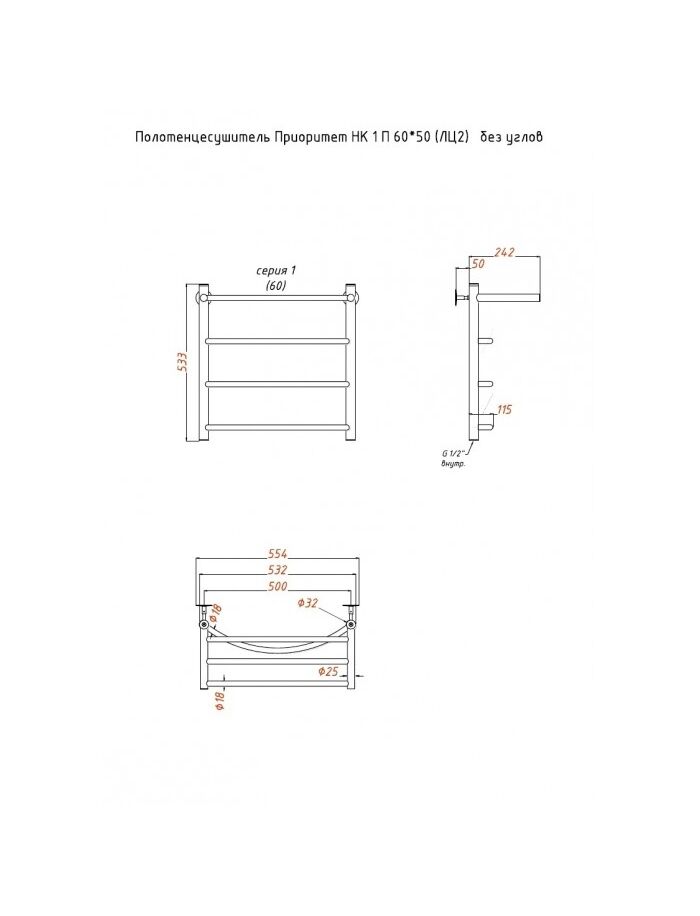 Полотенцесушитель Приоритет НК 1 П 60*50 (ЛЦ2) без углов