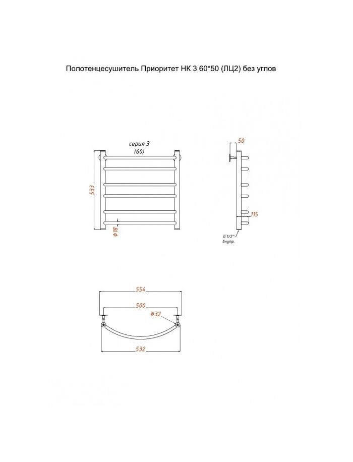 Полотенцесушитель Приоритет НК 3 П 60*50 (ЛЦ2) без углов
