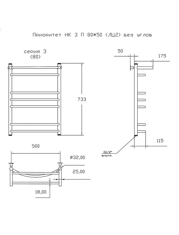 Полотенцесушитель Приоритет НК 3 П 80*50 (ЛЦ2) без углов