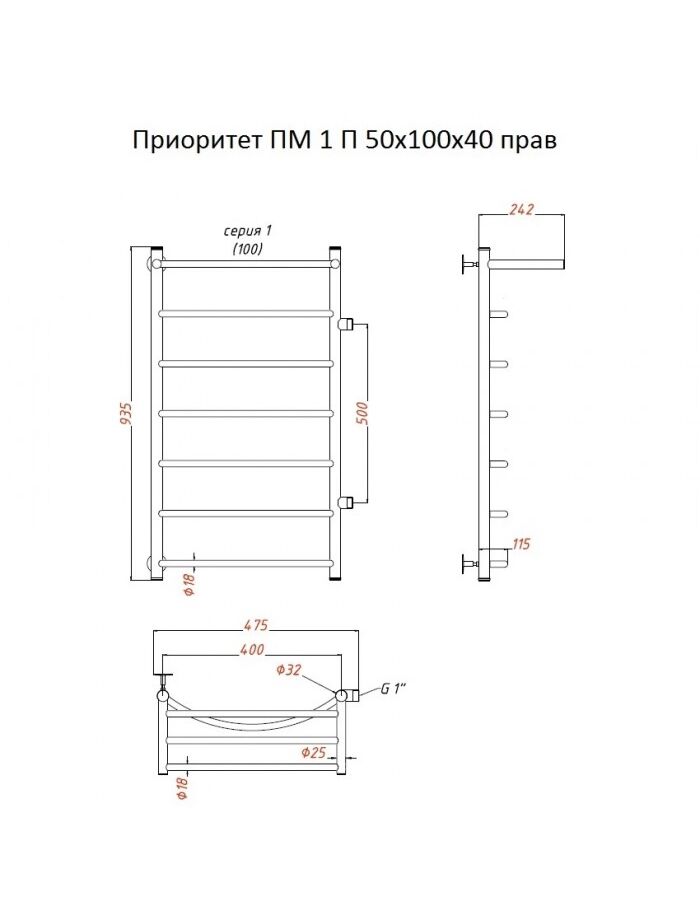 Полотенцесушитель Приоритет ПМ 1 П 50*100*40 (ЛЦ2) прав