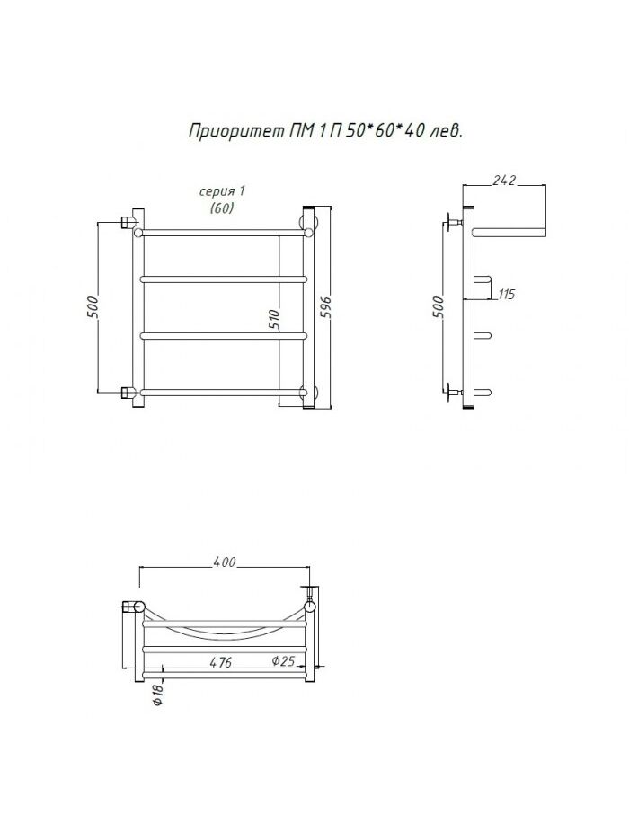 Полотенцесушитель Приоритет ПМ 1 П 50*60*40 (ЛЦ2) лев