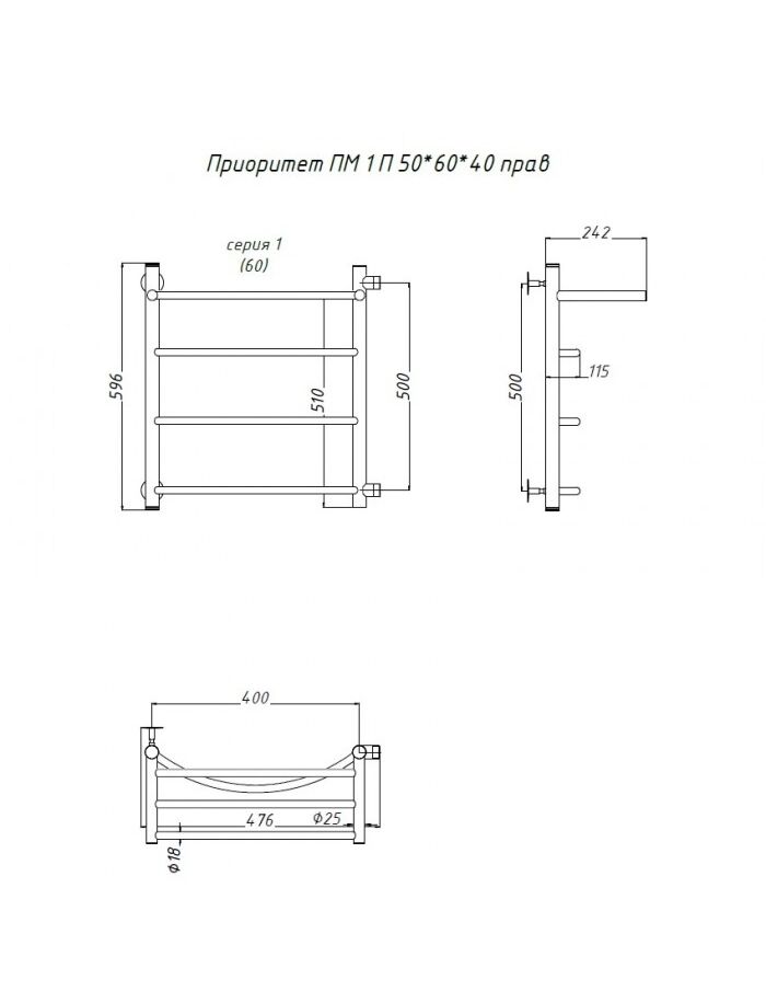 Полотенцесушитель Приоритет ПМ 1 П 50*60*40 (ЛЦ2) прав