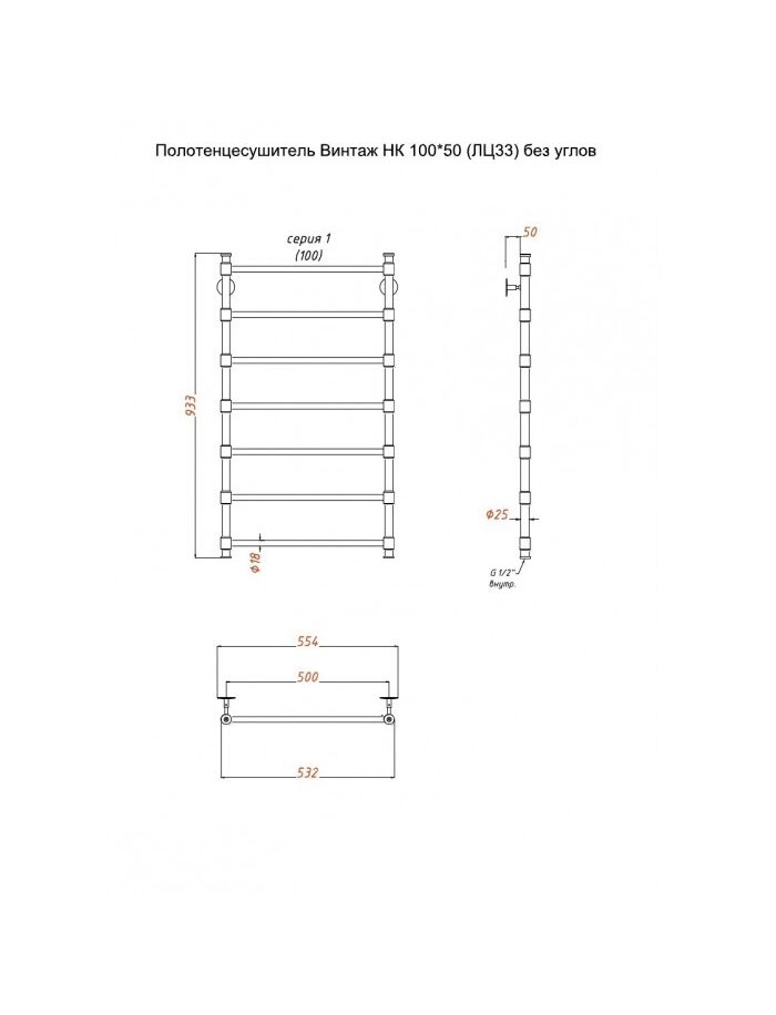 Полотенцесушитель Винтаж НК 100*50 (ЛЦ33) без углов