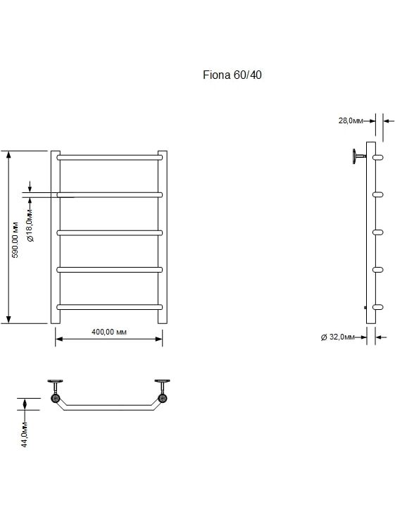 Полотенцесушитель водяной Aquanet Fiona 600x400, хром