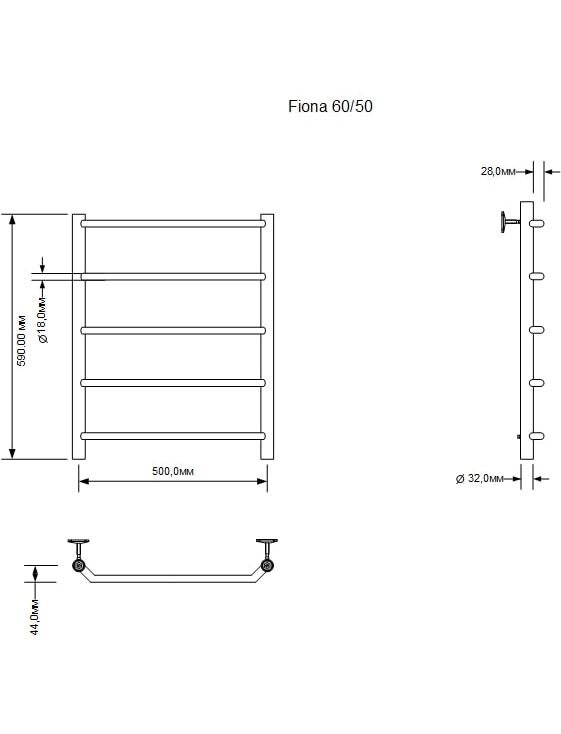 Полотенцесушитель водяной Aquanet Fiona 600x500, хром