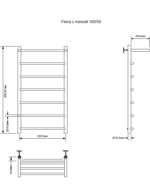 Полотенцесушитель водяной Aquanet Fiona с полкой 1000x500, хром