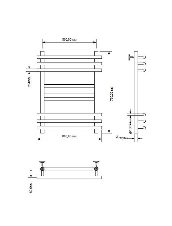 Полотенцесушитель водяной Aquanet Largo 800x500, хром