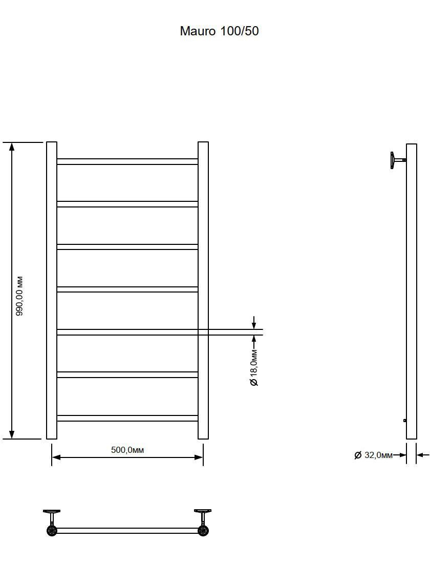 Полотенцесушитель водяной Aquanet Mauro 1000x500 хром