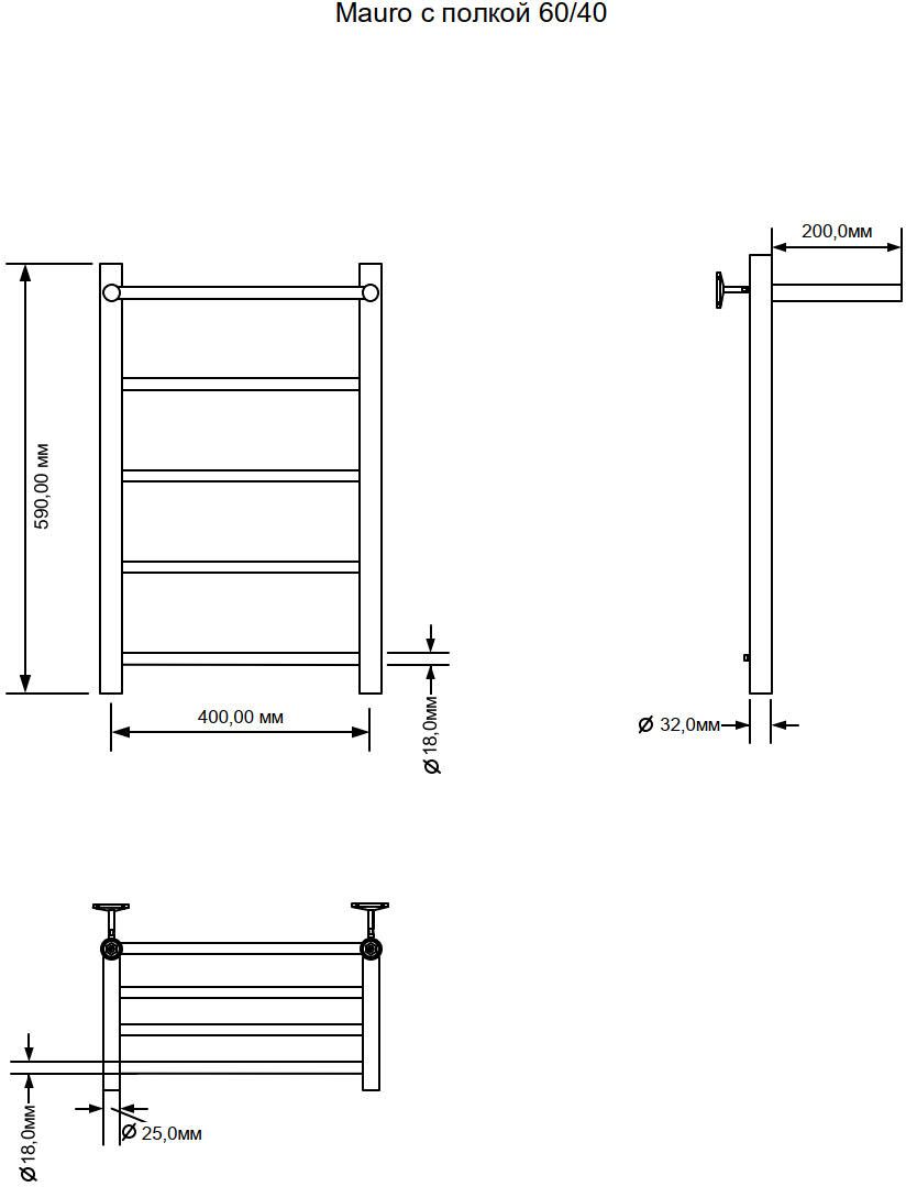 Полотенцесушитель водяной Aquanet Mauro 600x400 с полкой