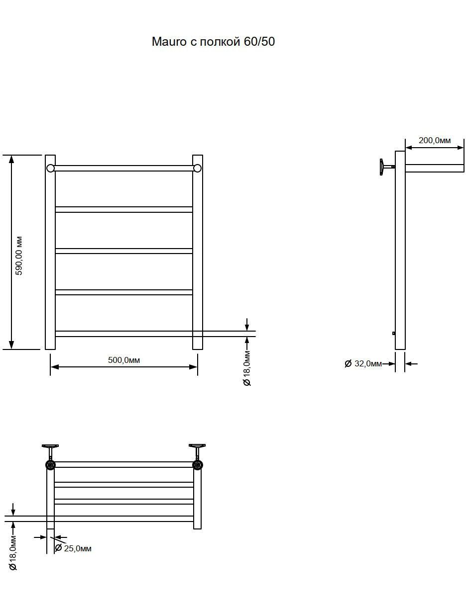 Полотенцесушитель водяной Aquanet Mauro 600x500 с полкой