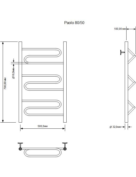 Полотенцесушитель водяной Aquanet Paolo 800x500, хром