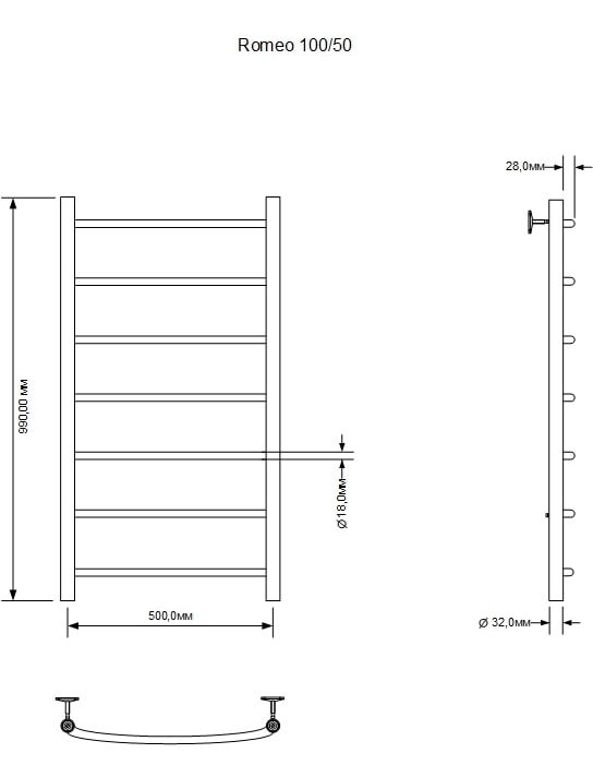 Полотенцесушитель водяной Aquanet Romeo 1000x500, хром