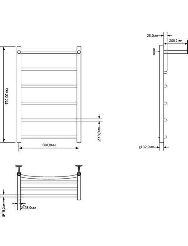 Полотенцесушитель водяной Aquanet Romeo с полкой 800x500, с полкой, хром