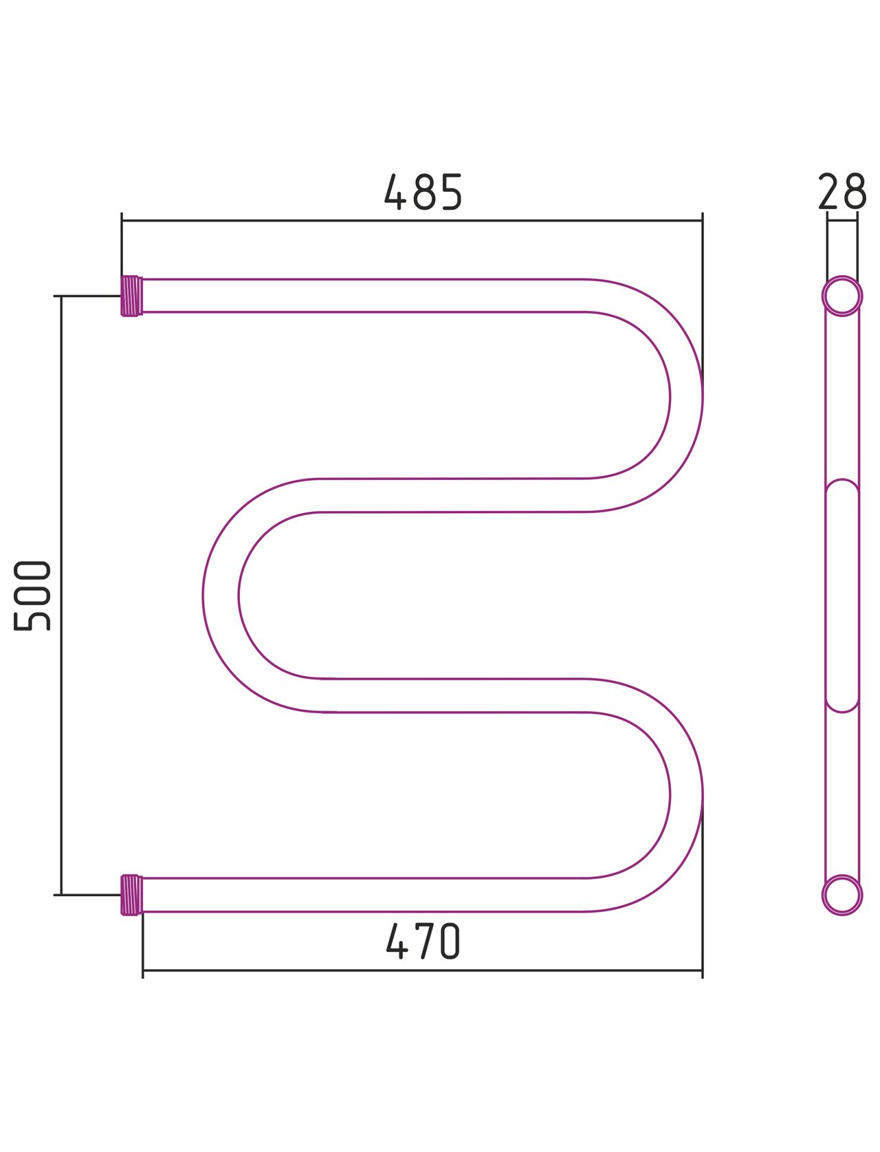 Полотенцесушитель водяной Стилье М-образный 500х500 резьба-сгон 1"