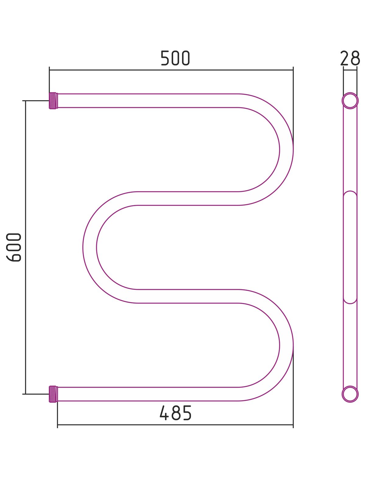 Полотенцесушитель водяной Стилье М-образный 600х500 резьба-сгон 1"
