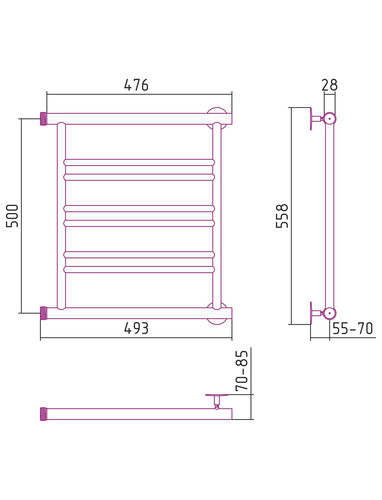 Полотенцесушитель водяной Стилье Минор 0601 500х500 (2+2+2) П