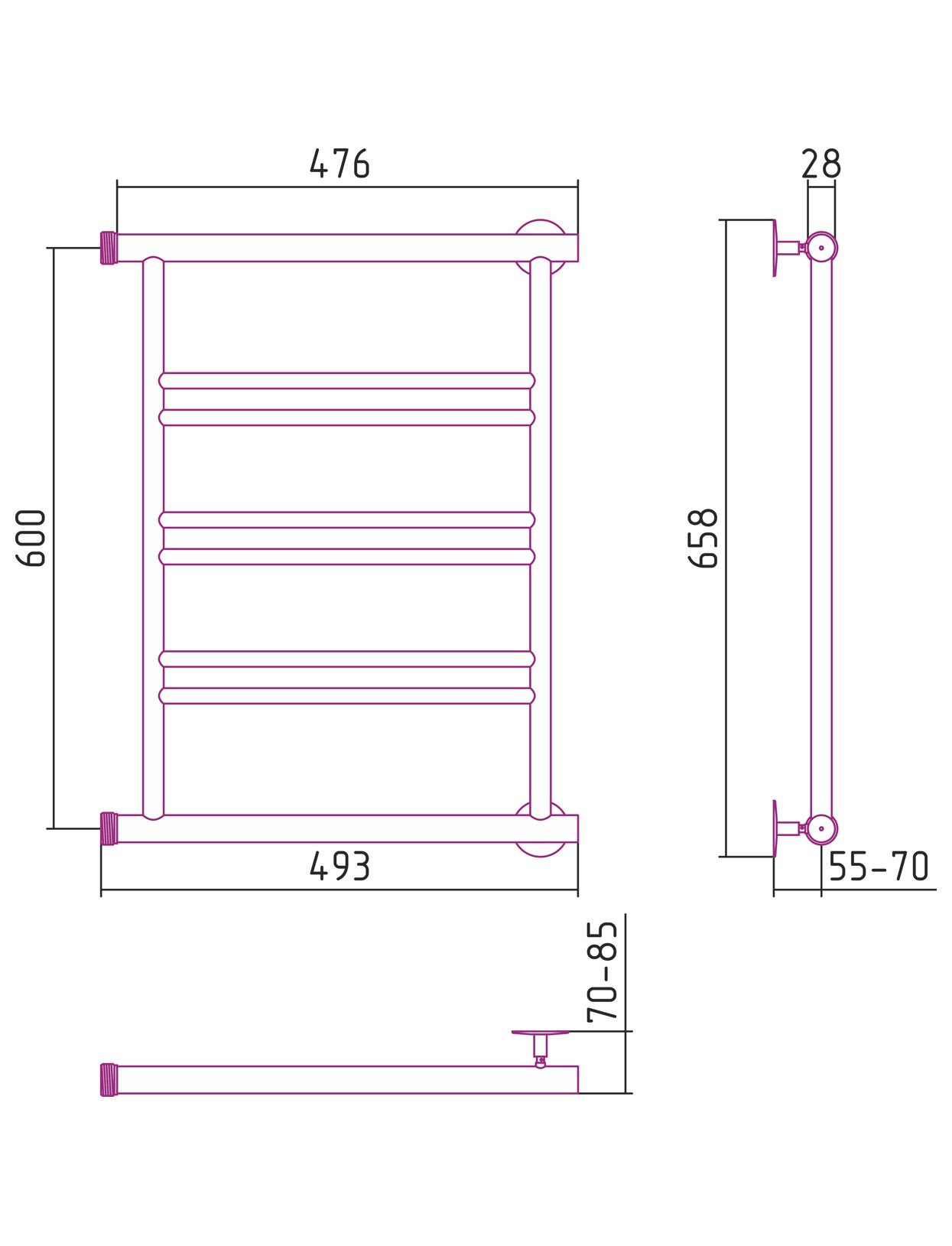 Полотенцесушитель водяной Стилье Минор 0601 600х500 (2+2+2) П