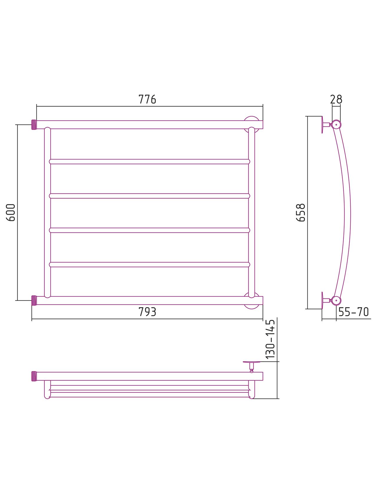 Полотенцесушитель водяной Стилье Минор 0602 600х800 (4) Г
