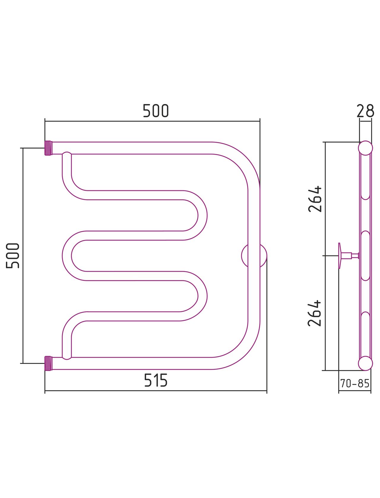 Полотенцесушитель водяной Стиле Тандем 500х500 резьба-сгон 1"