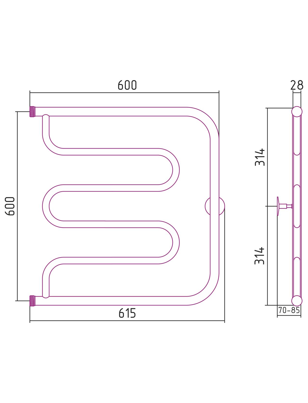 Полотенцесушитель водяной Стилье Тандем 600х600 резьба-сгон 1"