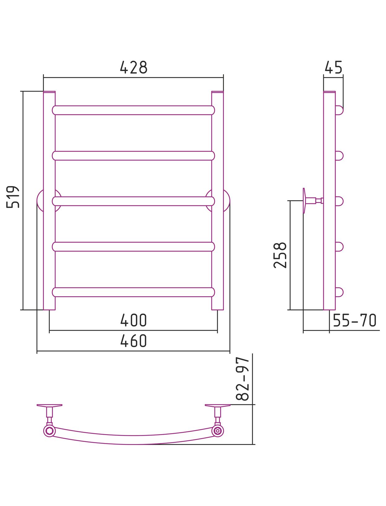 Полотенцесушитель водяной Стилье Универсал-50 600х400 (5) Г 21