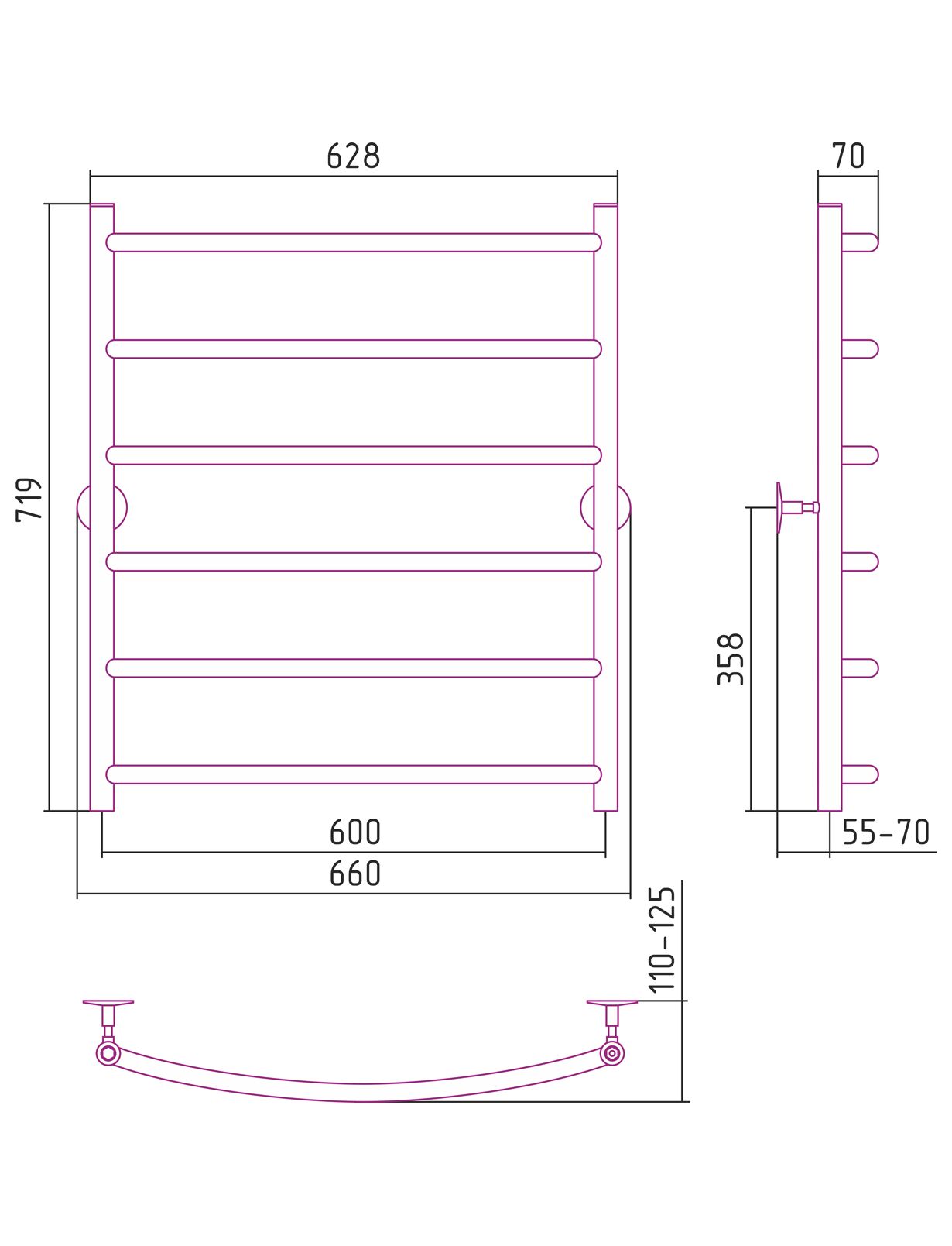 Полотенцесушитель водяной Стилье Универсал-50 800х600 (6) Г 21