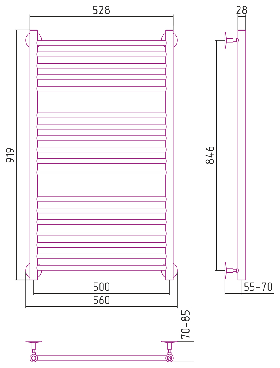 Полотенцесушитель водяной Стилье Универсал-53 1000х500 (5+6+7) П 18