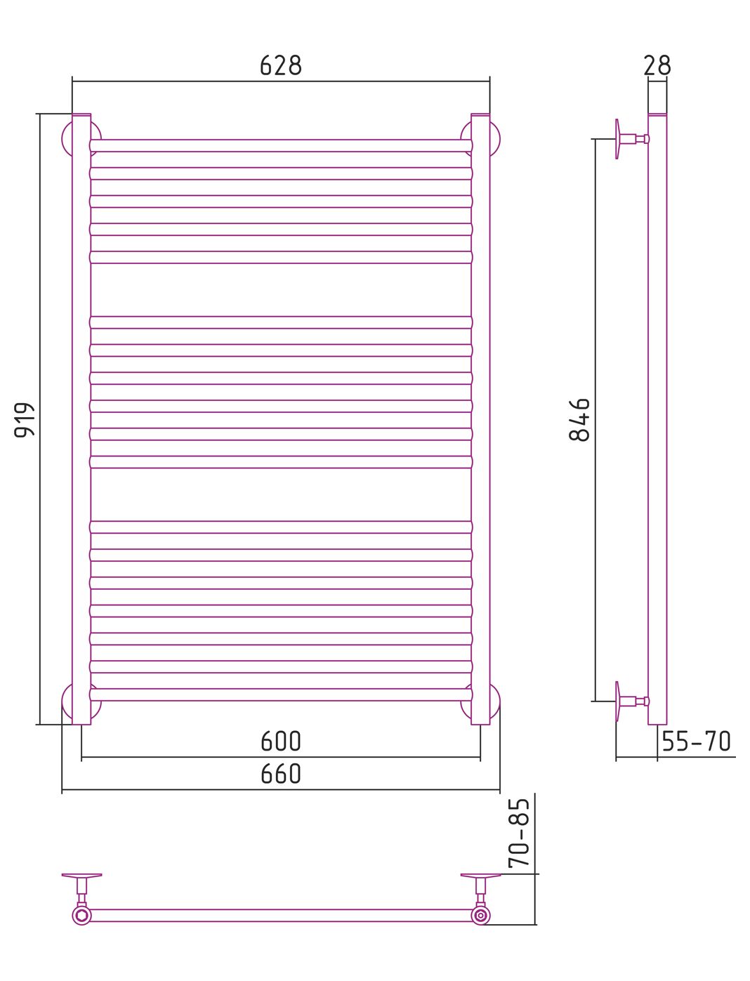 Полотенцесушитель водяной Стилье Универсал-53 1000х600 (5+6+7) П 18