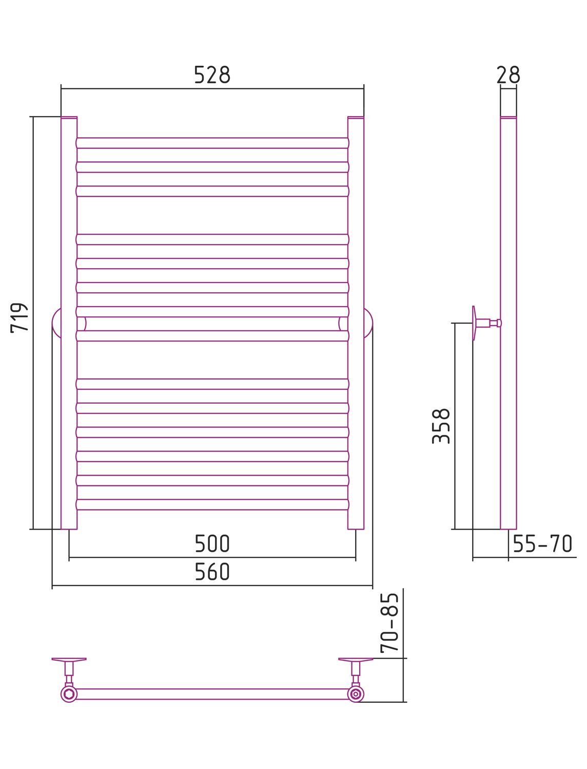 Полотенцесушитель водяной Стилье Универсал-53 800х500 (3+5+6) П 18