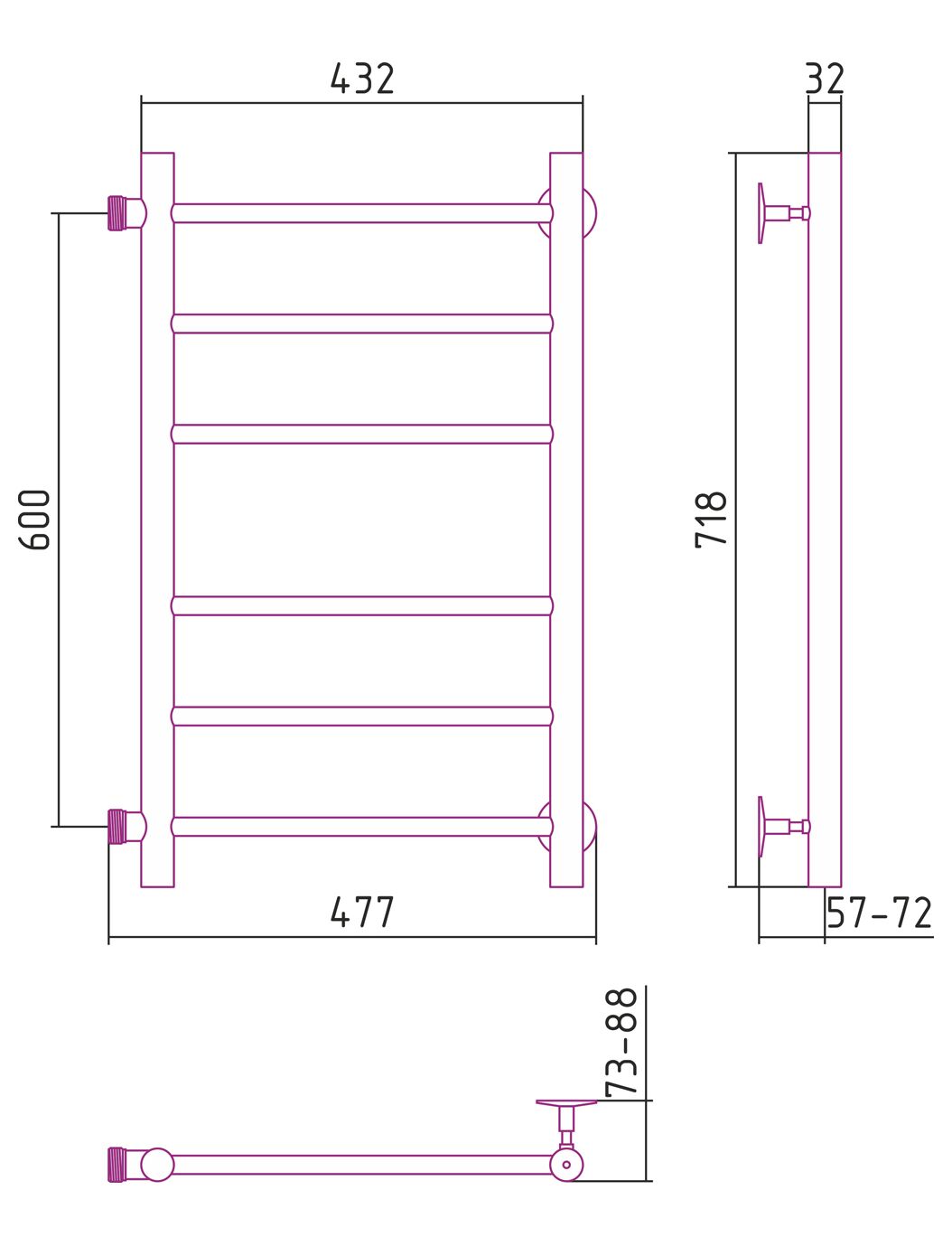 Полотенцесушитель водяной Стилье Версия-Б 600х400 (3+3) П 18