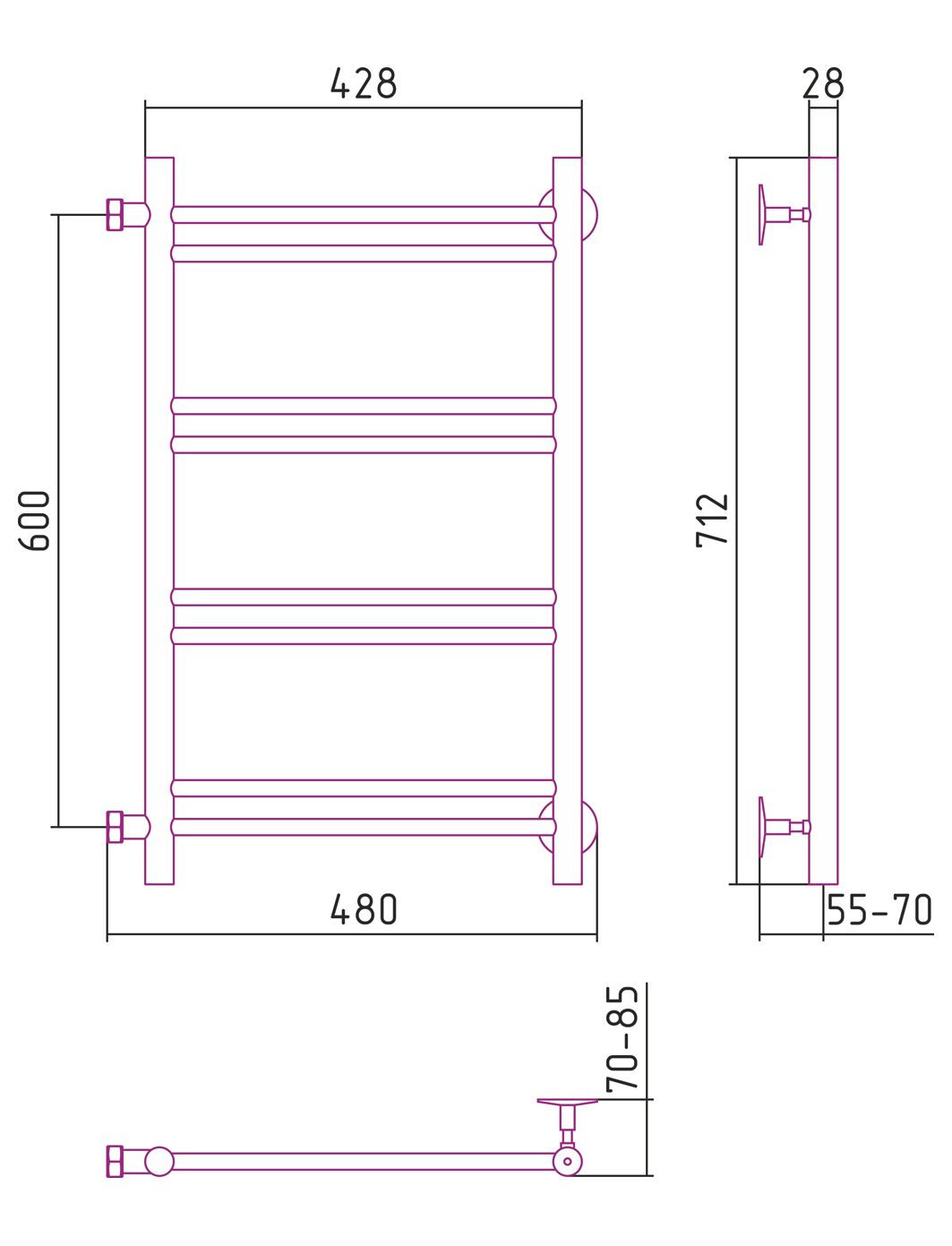 Полотенцесушитель водяной Стилье Версия-Б1 600х400 (2+2+2+2) П 16