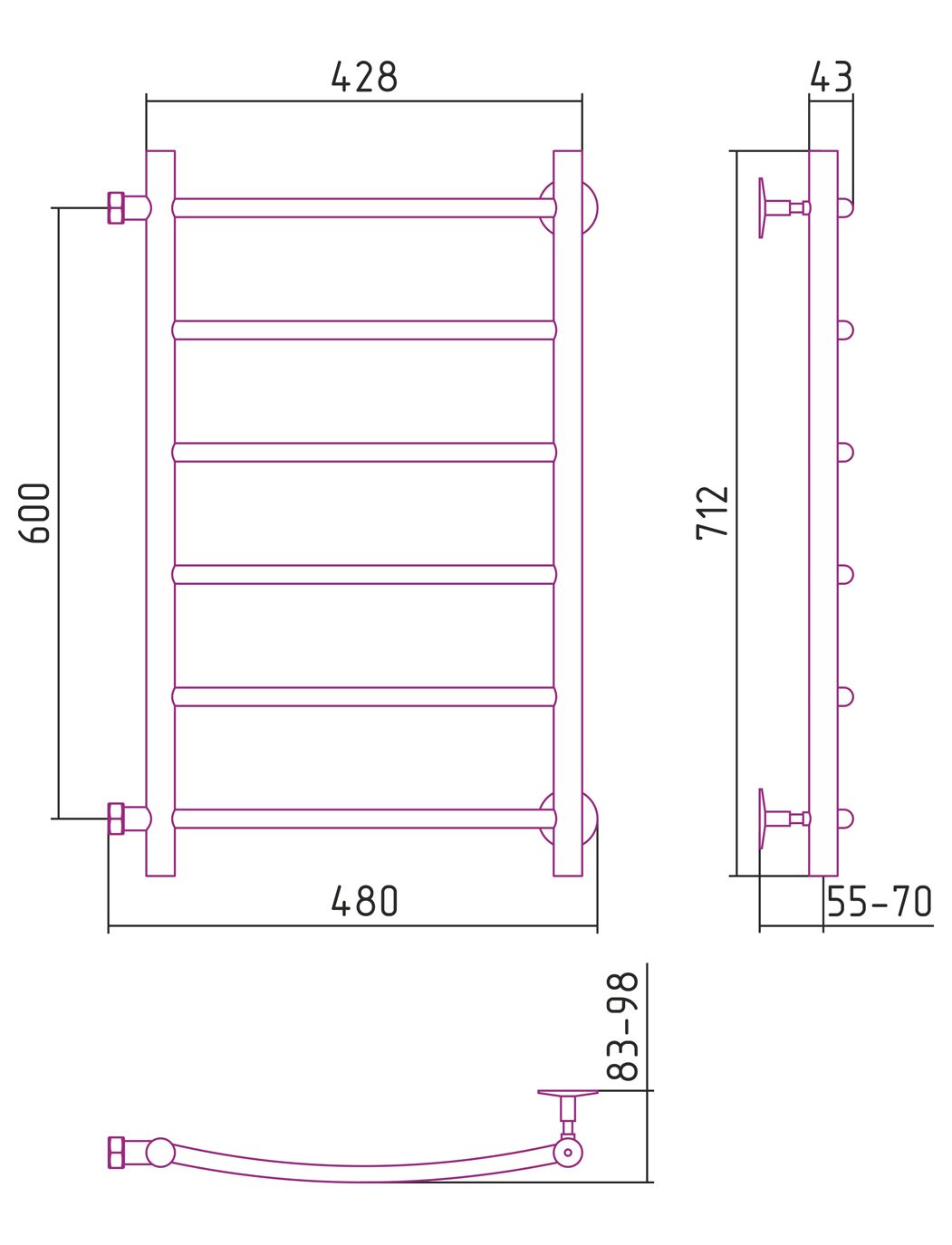 Полотенцесушитель водяной Стилье Версия-Б2 600х400 (6) Г 18