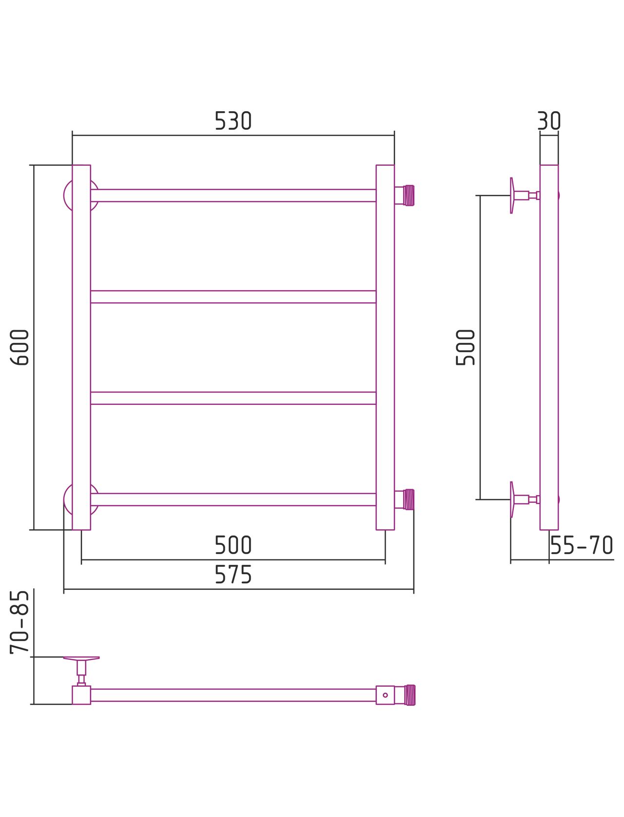 Полотенцесушитель водяной Стилье Версия-КБ 500х500 (4) П 20х20